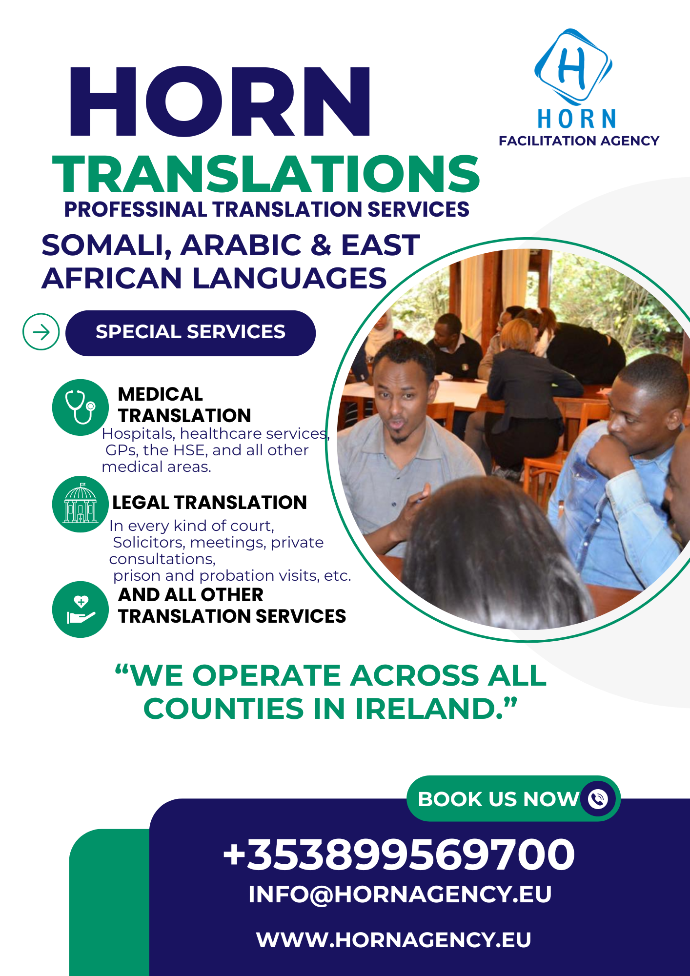 Empowering migrants from the Horn of Africa to thrive in Ireland through expert consulting, language services, and community support.